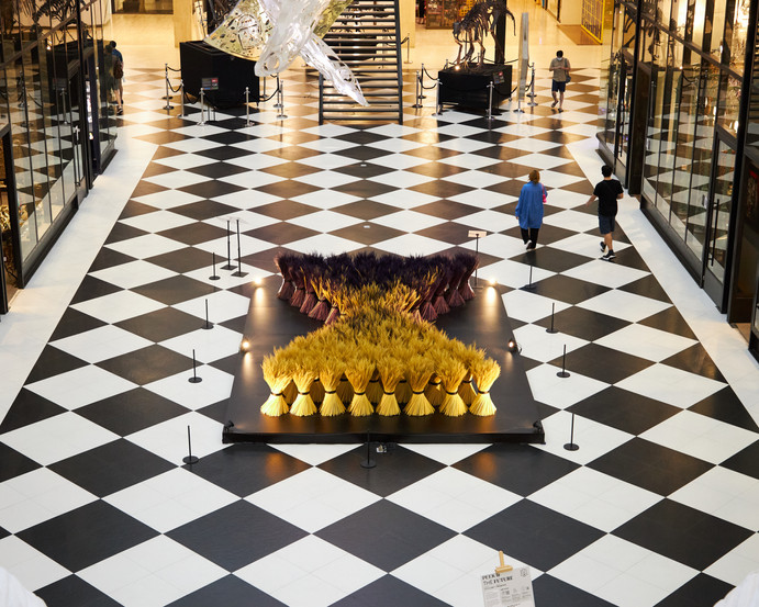 The installation ‘Hour(of)grass’ from bundles of sorghum represents the gradual transformation from one state to another over time which overlaps the current situation of COVID-19. Baan Boon hopes for the visitors to understand the work, be inspired, and have the willpower to carry on with life and overcome this problem together.