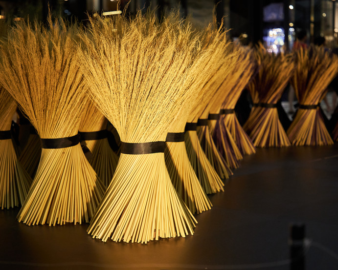 บ้านบูรณ์ตั้งใจนำมัดหญ้าข้าวฟ่างที่เป็นวัสดุหลักของผลงานไปผลิตไม้กวาดที่สามารถใช้งานทำความสะอาดบ้านในขั้นต่อไป ฝากทุกท่านติดตามไม้กวาดด้ามใหม่ของพวกเรา รอชมกันได้เลยว่าสีม่วงและสีเหลืองจะตัดกัน สนุกสนานขนาดไหน!